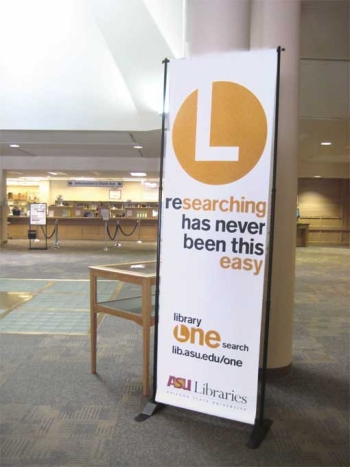 Again, we were able to capitalize on our relationships with the university technology office and the provost’s office and were able to place ads into major university systems. Again, we targeted the MyASU student/faculty portal. Even more significantly, we placed ads on the universitywide web authentication screens where students, faculty members, or staffers sign into any system. These had a big impact, as we learned when we questioned students a month after launch. Asked if they knew about Library One Search, their responses could be summed up as, “Of course, you can’t miss it—it’s there whenever you log into anything.”